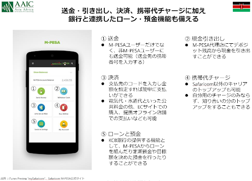 日本のPayPayやLINE payなどは一度ウォレットにいれると現金化が難しいので若干異なるものの、これらもモバイルマネーとも定義できるかと思います。このように先進国でも普及が始まったばかりのモバイルマネー、上述の通り、2000年代後半には既にアフリカの一部で銀行口座を持たない人々の代替サービスとして広がっており、リープフロッグ現象の代表的な事例として内外で取り上げられていました。サービス開始から10年以上が経過する現在でも、より複雑で多様な現地の課題の解決ができるサービスとして進化を続け、銀行口座を持つ人々をも飲み込もうとしていることがわかります。