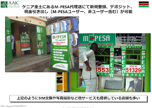 このモバイルマネーの先駆者、代表例がケニアのM-Pesa(エムペサ)です。ケニアの通信会社であるSafaricomのサービスで2007年に開始され、瞬く間にケニア国内に広がり、現在アカウント数は5,000万を超え、ほぼケニアの人口と同数となっております。エージェント数は約25万となっており、日本全国のコンビニの数が5.7万店ですので、約4倍となります。ケニアの人口5.5千万人を考えるとどれだけ密なネットワークが形成されているか理解いただけると思います。また決済額は、2021年でなんと年間22兆円(Safaricom IR資料)と衝撃的な数字となっています。(ケニア政府の歳出が年間2.7兆円程度ですので、約8倍)