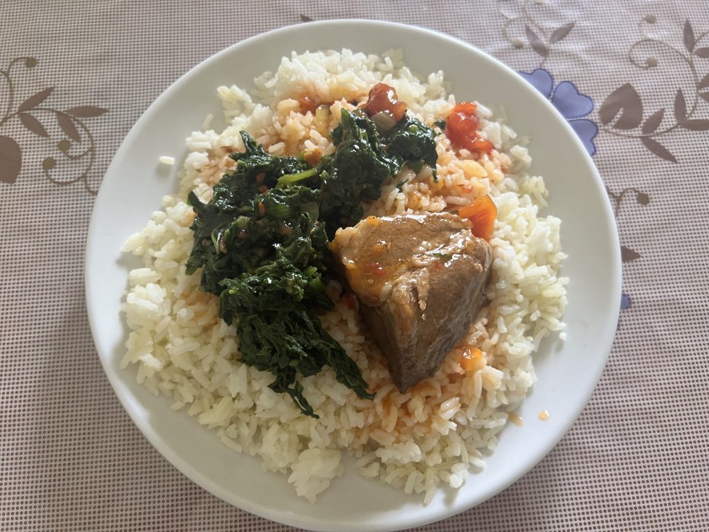 留学生や講師などが住む大学寮の近くにレストランがあります。鶏肉、魚、牛肉の中から選ぶことができ、1食約225円~270円ぐらいで食べることができます。主食はご飯とシマから選ぶことができます。お米はモング米などが使われており、日本でのお米と比較してパサパサしている印象です。また、シマは腹持ちがよく、食べると眠くなりやすいです。