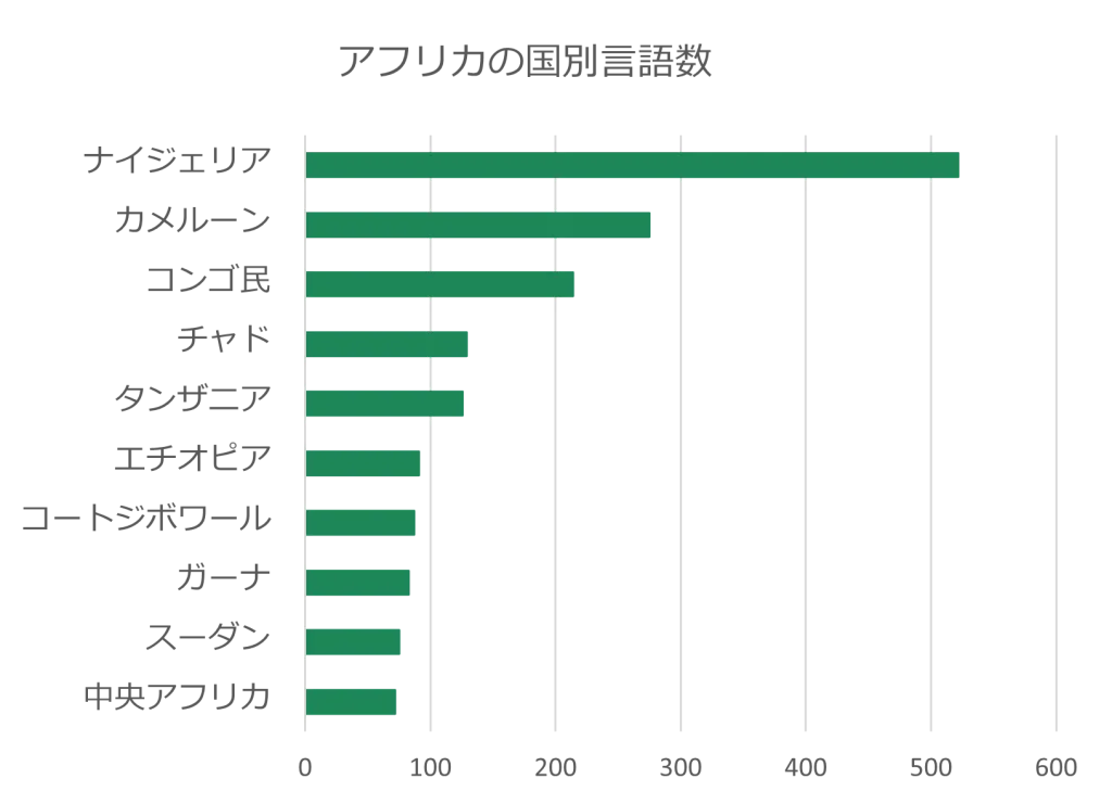 アフリカにはたくさんの言語が存在しますが、どの国にどのくらいの数の言語が存在するのでしょうか?