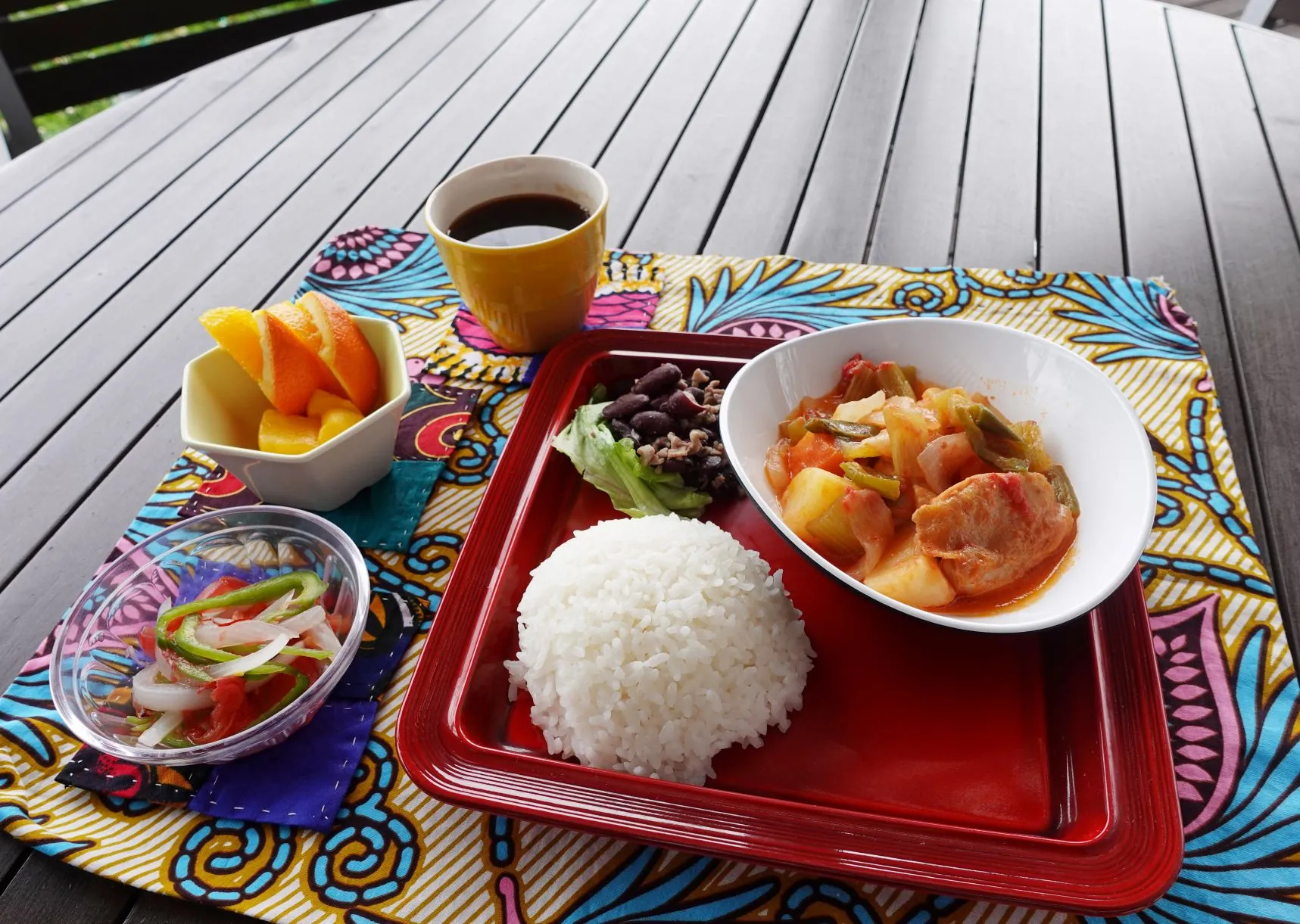 日本ではアフリカ独自の食材が手に入りにくいものもありますが、色々な工夫を凝らしたアフリカ料理のお店を見かけます。その一つとして「JICA関西食堂」をご紹介します。 こちらはJICA(独立行政法人国際協力機構)関西センター(兵庫県神戸市)の1階にある食堂です。誰でも利用可能で、地元の方や海外からのJICA研修員の方の来店も多いです。アフリカも含めた世界各国の月替りエスニック料理のほか、ハラルに配慮した食事や日替わりの定食などもあります。 お話を伺ったところ、直近2022年には、チュニジア、ルワンダ、ガーナの料理が提供されたそうです。記事トップ画面の写真は「ルワンダ料理」(2022年8月に提供)、下の写真は「ガーナ料理」(2022年3月に提供)です。また、前回の記事でご紹介した「ウガリ」も以前メニューで登場したそうです。写真やメニューを眺めるだけでも現地気分を味わえます。 【写真:JICA関西センター提供】